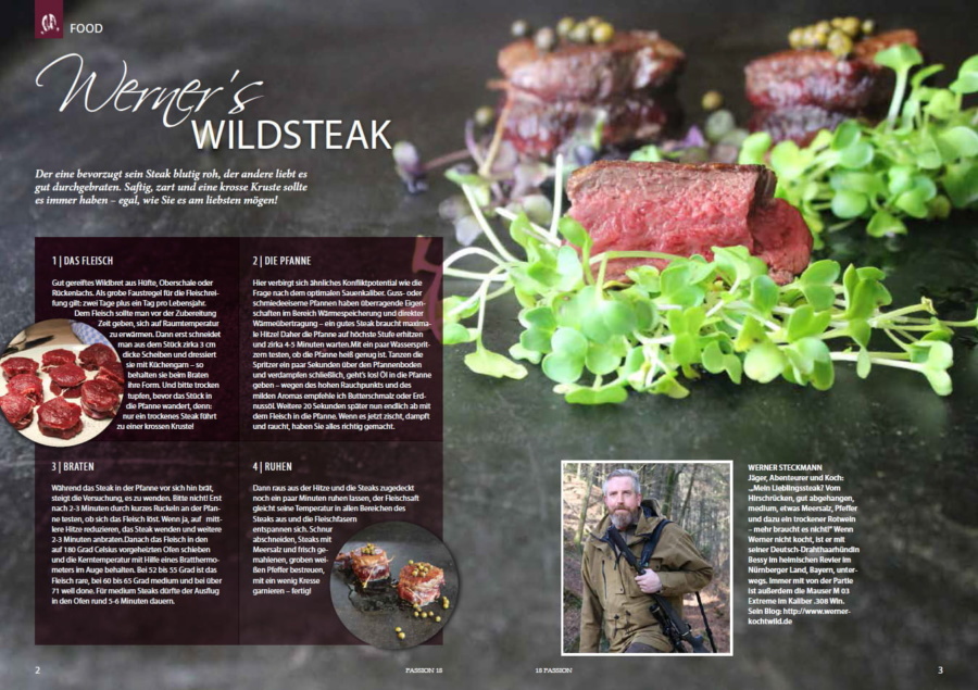 2-seitiger Artikel & Rezeptentwicklung für die PASSION, dem Kundenmagazin von Blaser, Mauser, Sauer und RWS.